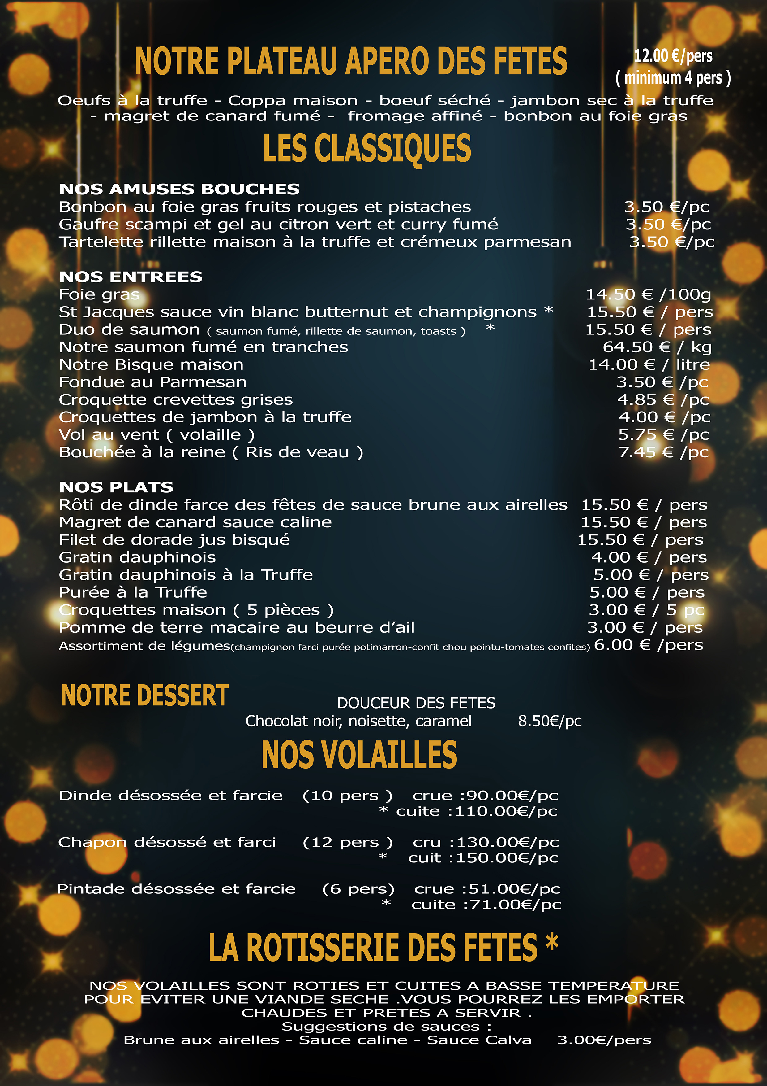 Notre carte des fêtes est arrivée ! Découvrez-la dans la rubrique "CARTE TRAITEUR"